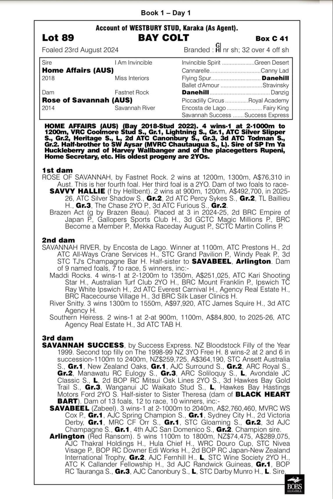 From the draft of Westbury Stud